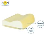 لایه رویی از فوم هوشمند (مموری فوم ) ساخته شده ، این ماده هنگامیکه تحت فشار قرار میگیرد، تغییر شکل میدهد. با برداشتن فشار، شکل فوم با کمی تأخیر به حالت اولیه برمیگردد. این ویژگی باعث میشود که هنگام خوابیدن روی فوم هوشمند، نیروی وزن سر و گردن با شدت کمتری به بدن بازگردانده شود و درنتیجه فشار کمی به مهرهها و عضلات سر و گردن وارد شودو قالب سرو گردن روی بالشت گرفته می شود .